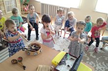 Музыка эшчәнлегендә балалар төрле уен коралларында уйнап карадылар, исемнәрен өйрәнделәр.