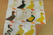 Зурлар төркеменә йөрүче балалар "Сертотмас үрдәк" әкияте буенча пластилиннан картонга әвәләп үртәкләр ясадылар.
