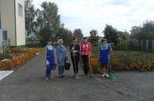 Бакчабыз әйләнә-тирәсен көн саен чиста, тәртиптә тотарга тырышабыз. Бүген дә бергәләп чыгып, корыган чәчәкләрне җыештырдык, себердек, уен мөйданчыгын тәртипкә китердек.