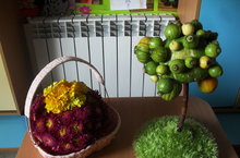 "Кабак бәйрәме"нә балалар белән бергә кечкенә кабаклардан топиарий һәм букет әзерләдек.