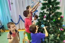 С ребятами украсили елку, повесили игрушки. Повторили песни и стихи.