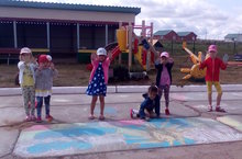 Кайсыбызның рәсем ясауга оста булуын, бакчабызның ишек алдында белдек.