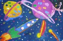 Сегодня мы с детьми рисовали рисунки на тему : "Космос". Детям рассказали о космосе, Ю.Гагарине и о планетах. Детям было очень интересно.