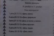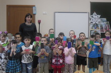 25 декабря по плану на зимние каникулы провели "День Книги" Дети принесли из дома свои любимые книги из которых организовали выставку книг. В первой половине дня дети встретились с библиотекарем из школы. Она рассказала о книгах, принесла старинные книги, журналы, детские книги. После дети встретились с книжным Айболитом, который проводил их в кгнижную мастерскую, где дети лечили книги. Во второй половине дня ребята сами смастерили детские книги и одну большую новогоднюю книгу.Все удачно и весело провели день, унесли кучу эмоций и радости от проделанного.