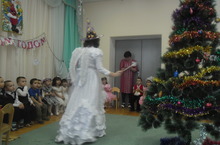 На Новогодний утренренник пришли ТИК и ТАК, они провели всех гостей и детей в новогоднюю сказку. А когда на часах стукнуло 12 появились главные герои сказки Дед Мороз и Снегурочка и они зажгли ёлку.