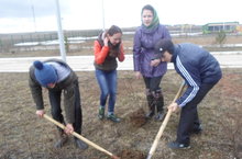 В рамках акции "Весенняя неделя добра" проводилась экологическая акция "День земли". 11-классники посадили деревья в школьном дворе.
