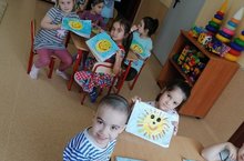 Сегодня на занятии по рисование дети сделали очень красивые солнышки. -