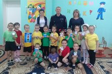 Буген безнен балалар бакчасында дэулэт автоинспекциясе инспекторы Насибуллин И.Д. катнашында "ЮЛ ЙОРУ КАГЫЙДЭЛЭРЕ "буенча курсэтмэ дэрес уздырылды. Дэрестэ балалар узлэренен белемнэрен курсэттелэр,яналыклар ишеттелэр,юл инспекторынын бик ук гади булмаган сорауларына дорес итеп жавап бирделэр. Дэрес жыр хэм уеннар бн урелеп барды.Соныннан кунагыбыз балаларга киемгэ кую очен светоотражательлэр булэк итте.