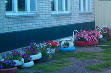Безне бакчабызның ишегалдында яңа сын үз урынын тапты. Гади машина тәгәрмәчләреннән нинди матур сыннар ясап була икән, бары тик фантазияне эшкә җигәргә кирәк!