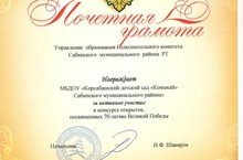 Район күләмендә үткәрелгән конкурста безнең бакча теләп һәм актив рәвештә катнашты. Без Мактаулы грамотага лаек булдык!