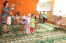 Тәрбияче Шәймиева Ч.Ф. җитәкчелегендә "Әкияттә - кунакта" театр түгәрәгендә шөгыльләнүче балалар "Теремкәй" әкиятен нәни тамашачыларга сәхнәләштереп күрсәттеләр.