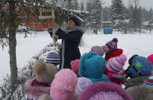 Атна башында бакчабызда "Кошларга ярдәм итик!" акциясе игълан ителде. Акциянең максаты: кышлаучы кошлар турында мәгълүмат булдыру, кошларга җимлек ясау, кошларга ярдәм итү. Әти-әниләр бик уңайлы, матур җимлекләр ясап алып килделәр. Җимлекләрне төрле материаллардан ясаганнар: пластик шешәләрдән, фанерадан, соктан бушаган савытлардан.Җимлекләрне, ипи валчыклары,көнбагыш, арпа, бодай ярмалары салып бакча территориясендәге агач-куакларга элеп куйдык.