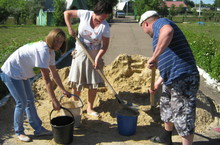 Бүген бакчабызга көтеп алынган ком кайтты. Комны тиз арада комлыкларга урнаштырыга кирәк. Бакча эшчеләре, әти-әниләр - барыбыз да җиң сызганып эшкә керештек. Бергә эшләве күңелле шул, ярты сәгать тә узмады комлыклар тулган иде инде.