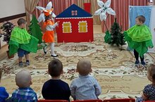 Итоговым мероприятием тематической недели "Лес.Безопасность в лесу" в средней группе стала инсценировка воспитанниками сказки "Заюшкина избушка". Зрители-малыши младшей группы внимательно и заинтересованно смотрели сказку.