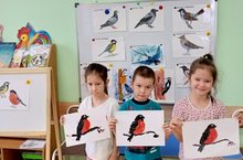Сегодня с воспитанниками средней группы провели беседу о наших пернатых друзьях, закрепили названия птиц, узнали о пользе птиц в природе. Усвоили правила поведения в лесу: не шуметь, не разорять гнёзда птиц, беречь и любить пернатых, помогать выжить зимой.