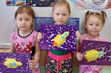 В течение дня, с целью формирования представлений детей о космосе, планетах, с воспитанниками средней группы провели беседу "Космос-это интересно"; дети нетрадиционным методом нарисовали звездное небо, научились конструировать из бумаги ракету, познакомились с первым советским космонавтом Ю.А.Гагариным.