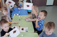 В первой младшей группе аппликация путем смятия бумаги "Птица"