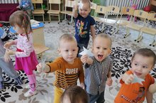 Подвижная игра "Кто больше соберет звезд?" в первой младшей группе 13.04.2022