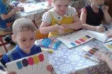 Уртанчылар төркеме балалары кисеп ябыштыру шөгылендә "Төсле шарлар" темасында шакмактан- түгәрәк,турыпочмактан -овал кисәргә өйрәнделәр. Төрле төстәге кәгазьләрдән үзләре тетәгәнен сайлап алып матур шарлар кистеләр. Аннары альбомга ябыштырып куйдылар.Шарлар белән бәйрәмнәрдә бүлмәне бизәп булуын, төрле бәйрәнәрдә катнашып булуын да искә төшерделәр.