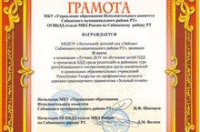 В районном туре республиканского смотра-конкурса среди воспитателей и дошкольных образовательных учреждений Республики Татарстан по профилактике детского дорожно-транспортного травматизма "Зеленый огонек" наш детский сад занял 2 место! Коллектив был награжден грамотой и ценным подарком.