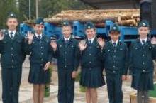 Наши ученики , члены школьного лесничества участвовали на открытиие древообрабатывающего завода посёлка Лесхоз с приветствием.