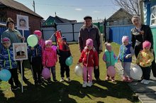Балалар белән авылыбыз ветеранын котлап бүләкләр тапшырдык.