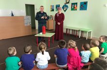 Бүген балалар бакчасында Саба районы янгын куркынычсызлыгы күзәтү бүлеге башлыгы Айнур Галимуллин, янгын куркынычсызлыгы буенча чыгыш ясады.