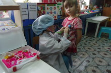 Балаларны өлкәннәр хезмәте, аларның һөнәрләре турында белемнәрен киңәйтү максатыннан әңгәмәләр үткәрелде, слайдлар каралды, фельдшер-акушерлык пунктында булып шәфкать туташы һөнәре белән таныштык.