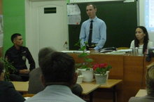 Бүген мәктәп күләмендә Сибагатов Айгиз Әнәсович һәм Албина Исхакова очрашу узды. Көн тәртибе буенча юл йөрү кагыйдәләре, укучыларның кагыйдәләрен һәм бурычларын, антитеррорга каршы лекция укыдылар.