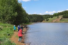 Лагерыбыз күңелле генә дәвам итә. Бүген без Мишэ елгасына балык тотарга бардык. Ашаров Ренас беренчеләрдән эләктерде.