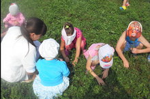 12.07.2013 Чәчәкләрне үстергәндә балалар да читтә калмыйлар, апаларына чәчәк араларын йомшартырга булышалар.