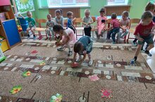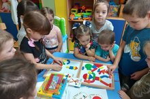 Кисеп ябыштыру эшчәнлегендә "Татар милли киемнәрен бизә" дидактик уены аша балалар белән татар халык киемнәрен искә төшердек.