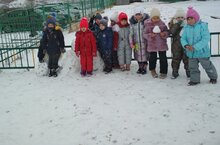 Балалар рәхәтләнеп кар бабай, сыннар ясадылар. Рәхәтләнеп саф һава суладылар.
