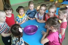 Су белән экспериментлар ясадык. Буш стаканда да һава барлыгын балалар аңлады.