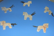Яңа ел открыткасы 20.12.2013 Тиздән Яңа ел килеп җитә. Киләсе ел - ат елы булгач, без дә кечкенә атлар кисеп ябыштырдык.