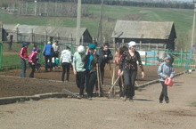 Дәресләрдән соң бакчада эш кайный : түтәлләрне казу , суган утырту , карлыган араларын эшкәртү Һ.б.