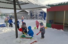 Бакчабызның көн тәртибендә һәр көнне саф һавада булу каралган. Менә бүген дә бакчага йөрүче балаларыбыз саф һавада сәламәтлекләрен ныгыттылар. Алар уеннар уйнадылар, кардан өеп ясалган таудан шудылар, көрәк тотып участокны кардан чистарттылар, эштә үзләренең көчләрен сынадылар. Шулай ук хезмәт тәрбиясе дә алдылар. -