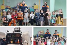 В детском саду прошла профилактическая встреча с сотрудниками МЧС, главной целью которой было обучение подрастающего поколения правилам безопасного поведения, предотвратить возможные экстремальные ситуации и научить детей осторожности. На этот раз в гости к нашим воспитанникам пришли спасатели-ГКУП СС РТ при МЧС РТ ЗПСО №4- Кашапов С. Н., Гимадеев И. М. Они приготовили для воспитанников детского сада интересное и познавательное занятие по спасению в черезвычайных ситуациях.