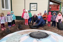 Экология атналыгында балалар белән роза чәчәкләрен кышка каплап куйдык. Кыш көне кайбер чәчәкләрне, куакларны туңмасыннар, өшемәсеннәр өчен каплап куярга, агачларның тамырлары туңмасын өчен төпләренә кар өяргә кирәклеген сөйләдек.