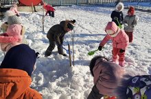 Үзенең салкыннары белән, акка төренеп кыш та килеп җитте. Балалар белән быел утырткан агач төпләренә кар өеп, тамырларын җылыттык. Балаларга агачларга ярдәм итү бик ошады.