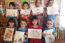 Бәйрәмне тәмамлап, балалар әтиләренә үзләре ясаган бәйрәм открыткаларын тапшырдылар.