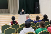 Вместе с учащимися, почтили память минутой молчания и «напоили» из чаши с водой цветы (из чаши набирали воду в сложенные лодочкой ладони и полили из рук растения), в память о жертвах Бесланской трагедии и всех жертв терроризма.