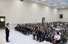 Сотрудники Госавтоинспекции обратились к учащимся с просьбой придерживаться Правил дорожного движения и не забывать, что дорога требует от каждого участника дорожного движения постоянного внимания, уважения и ответственности.