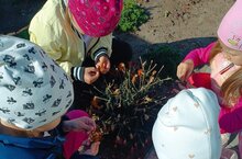 Көзге матур көннәр дәвам итә. Балалар тәрбияче апалары белән берлектә чәчәк орлыклары җыярга чыктылар. Балалар һәр чәчәкнең исемен белеп, атап, аерым капларга салып бардылар. Табигатьне сакларга, яратырга кирәклеге ассызыкланды. Шул ук чиратта хезмәт тәрбиясе дә бирелде.
