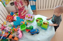 Балалар бакчасында белем һәм тәрбия бирү хезмәт белән үрелеп алып барыла. Бүген балалар юылган уенчыкларны урыннарына урнаштырып куярга өйрәнәләр.