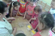Бүген без су белән төрле фокуслар ясап карадык.Су, аның үзенчәлекләре, табигатьтә була торган үзгәрешләр турында белемнәрне киңәйттек.Яңгырның каян килеп чыкканын белдек.Чараның максаты- гади тәҗрибәләр һәм уеннар аша балаларның су үзенчәлекләре турындагы белемнәрен тирәнәйтү;яшәү чыганагы булган суга сак караш тәрбияләү;табигатькә соклана һәм аның гүзәллеген күрә белергә өйрәт ү.