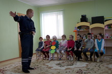 Бүген, бакчабызда , ЮХИДИ инспекторы Илнур Насибуллин белән эчтәлекле очрашу булды. Өлкәннәр группасына кергән балалар инспекторга атна дәвамында үзләштергән белемнәрен күрсәттеләр - юл йөрү кагыйдәләрен, шигырьләрен сөйләделәр, җырлар башкардылар. Очрашу барышында иң элек , юл кырыеннан барлык билгеләрне җыеп, шул рәсемнәр белән мактанырга , дип БЕЛМӘМЕШ килеп керде. Тәрбиячеләр- Дамира Зарипова , Алинә Нургалиева һәм балалар Белмәмешкә юл билгеләренең ни өчен кирәк икәнлеген аңлаттылар. ЮХИДИ инспекторы Илнур Насибуллин Үз чиратында балаларга киңәшләрен бирде, җәяүлеләргә юлда йөрү, “зебра” аша юлны аркылы чыгу кагыйдәләрен аңлатты. Балалар бакчасына килгәндә машинада махсус креслоларга утырып йөрергә, каешларны эләктерергә кирәк икәнлеген, әгәр шулай эшләмәгән очракта 3000 сум күләмендә штраф түләргә туры килүен дә искәртте. Әйтеп узарга кирәк , “Умырзая ” балалар бакчасында Дамира Данировна җитәкчелегендә “Яшь җәяүле ” түгәрәге эшләп килә. Түгәрәктә балалар юл йөрү кагыйдәләрен үзләштерәләр, юл кырыйларында торган билгеләр белән танышалар. Ә бүгенге чарага килгәндә , Илнур Насибуллин, балалар янына буш кул белән килмәгән иде. Ул аларга шушы теманы яктырткан раскраскалар, китапчыклар , ә балалар бакчасына велосипед бүләк итте.