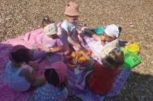 В рамках недели "Песочные фантазии" воспитанники коррекционной группы, соревнуясь друг с другом, лепили из песка разные "угощения", украшали их цветами, оставили на влажном песке отпечатки ладоней. Дети с удовольствие играли в игру "Сыщики", где находили глубоко спрятанную в песок игрушку. Игра с песком получилась очень увлекательной.