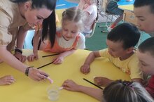 Вода – одно из самых удивительных веществ на планете. Мы уже много знаем о свойствах воды, а на данном занятии решили узнать, есть ли у воды какие-то свойства, про которые мы еще не знаем.Таким образом путем совершения умственных операций: сравнение, обобщение, способность анализировать- детям стало известно, что в отличие от твердых тел, вода не имеет собственной формы, она приобретает форму того сосуда, в который ее наливают. На таких занятиях у детей возрос интерес к экспериментированию.