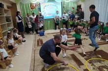 19 февраля в честь праздника Дня защитника Отечества малыши 1 и 2 младшей группы со своими воспитателями провели веселый праздник вместе с родителями. Дети и родители соревновались, отгадывали загадки, танцевали и читали стихотворения. Папам и дедушкам дети подарили открытки, которые они изготовили вместе с воспитателями. -